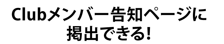 ![]() | ![]() 【連作枠】 編集長のゴリ押し/スナップin吉祥寺の内、どれか1つ掲載1回 もしくはClubメンバーページ1/6ページに掲出2回 |