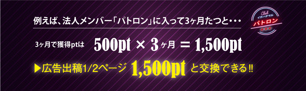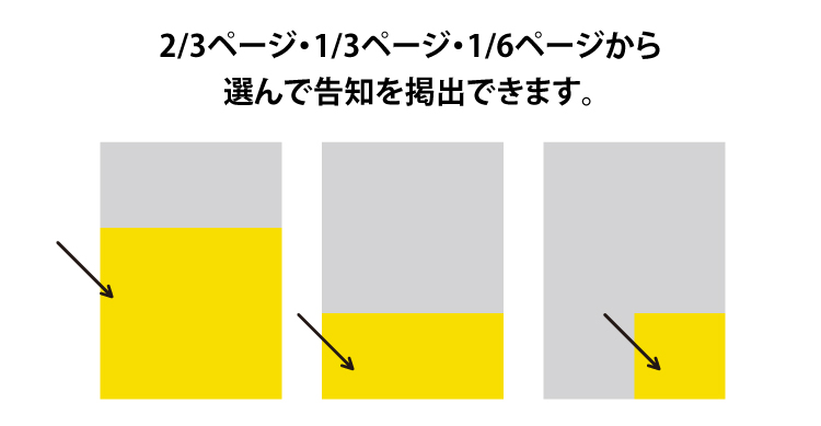 | ①広告出稿1ページ 3,000pt | ⑥広告出稿1/6ページ 500pt |